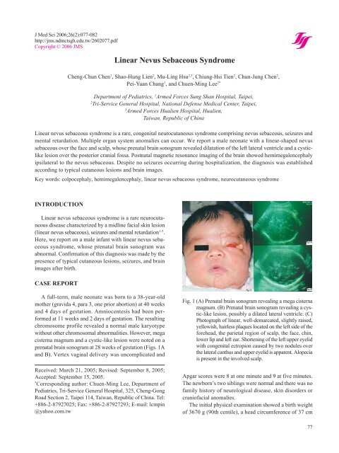 Linear sebaceous nevus syndrome. Linear sebaceous nevus syndrome. It is characterized by the presence of nevus sebaceous ocular anomalies neurological deficits and convulsion. The complexity of classification of this neurocutaneous syndrome is discussed.