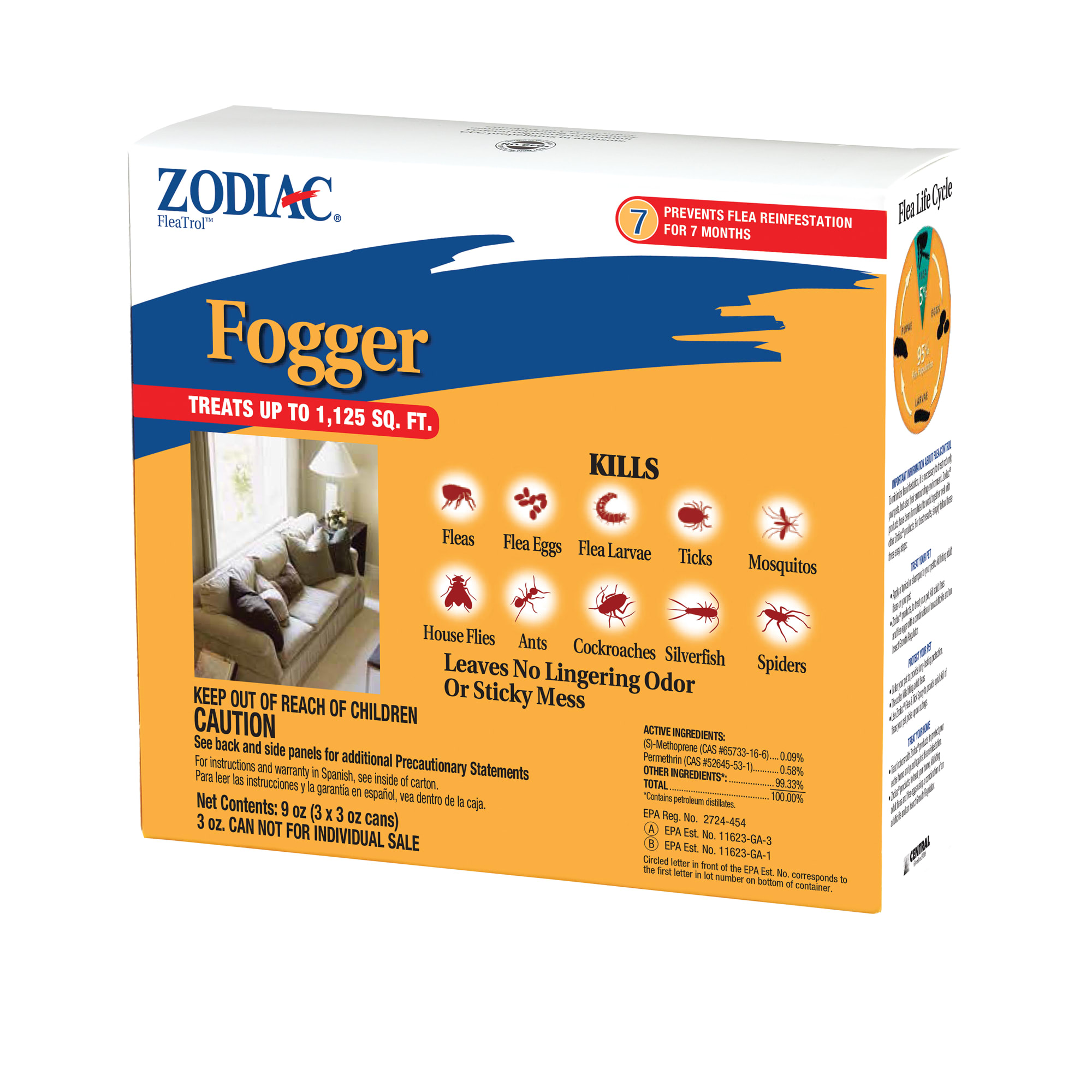 Zodiac Flea Tick Premise Spray - With Precor Insect Growth Regulator IGR. Sparingly to be sure but its an option. Protect Your Pet with Zodiac Spot On Products. Zodiac Flea Tick Premise Spray - With Precor Insect Growth Regulator IGR. A worker at Pet Smart told me to try Zodiac and after 2. This specially formulated aerosol spray helps kill ticks fleas flea eggs and flea larvae and can provide protection for up to 7 months. Kills and repels fleas ticks including those which may carry Lyme disease lice mosquitoes gnats and flies.