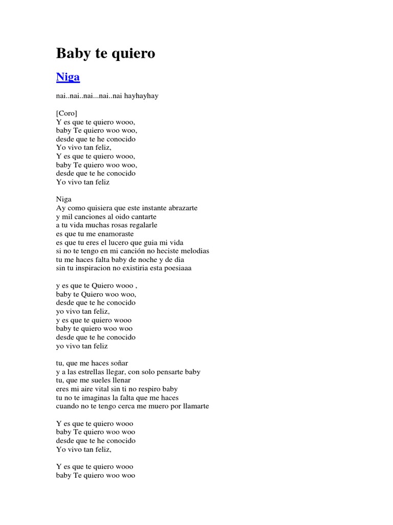 Baby Te Quiero Letra
