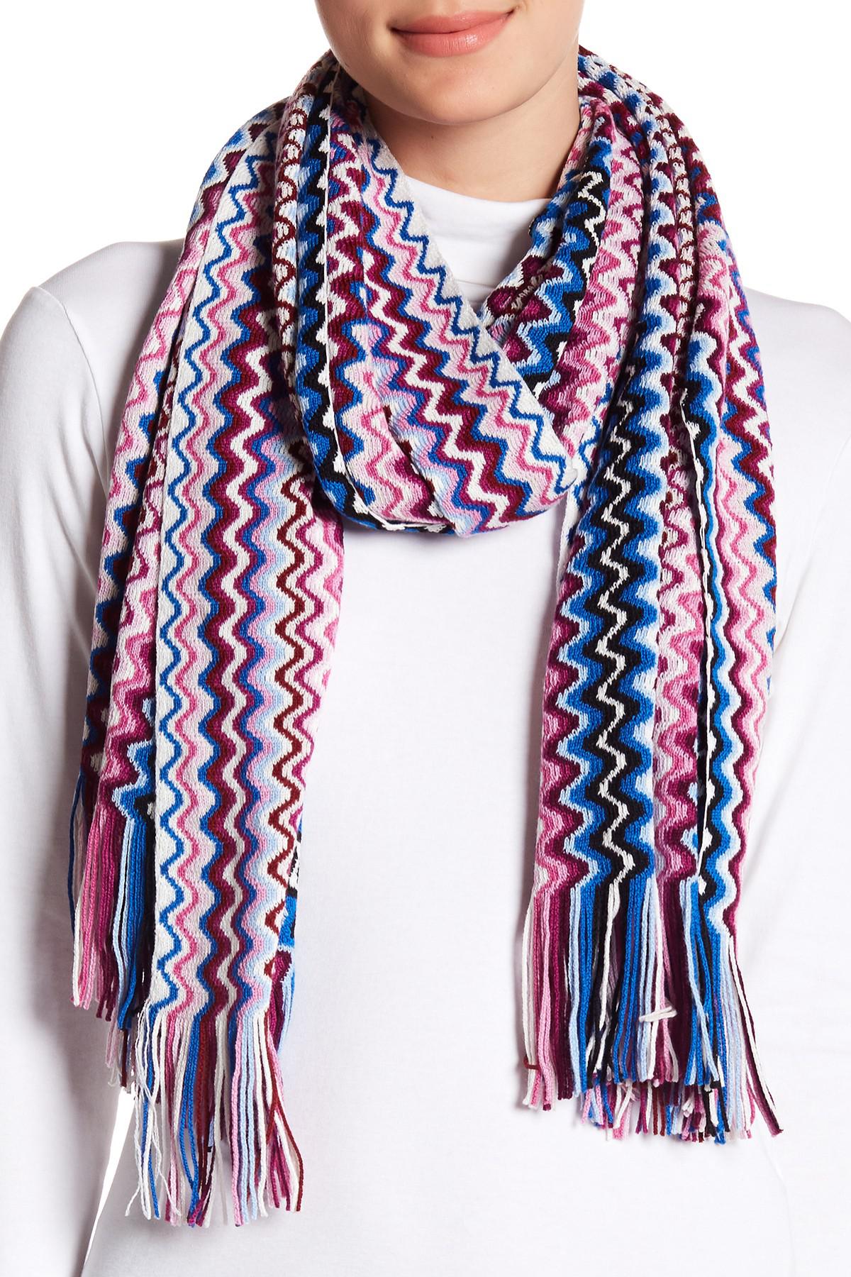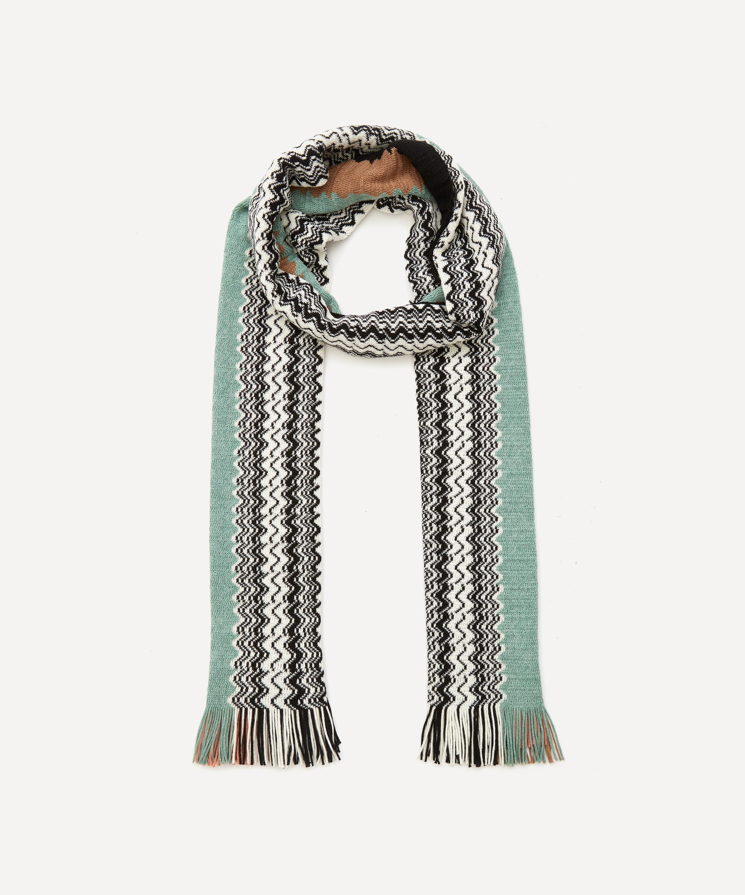 Material 50 wool and acrylic. Zig-zag wool-blend knit scarf. Shop Missoni Metallic Zigzag Wool Blend Scarf In Red from 400 stores starting at 229.